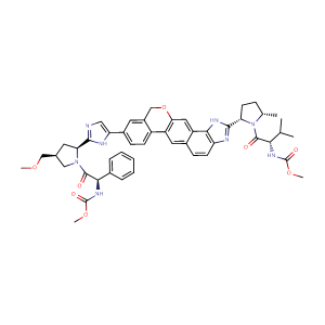 Velpatasvir;velpatasvir(GS-5816);methyl ((2s)-1-((2s,5s)-2-(9-(2-((2s,4s)-1-((2r)-2-((methoxycarbonyl)amino)-2-phenylacetyl)-4-(methoxymethyl)pyrrolidin-2-yl)-1h-imidazol-5-yl)-1,11-dihydroisochromeno(4',3':6,7)naphtho(1,2-d)imidazol-2-yl)-5-methylpyrrolidin-1-yl)-3-methyl-1-oxobutan-2-yl)carbamate;Velpatasvir API;Unifiram (DM-232);Methyl [(2S)-1-[(2S,5S)-2-[9-[2-[(2S,4S)-1-[(2R)-2-[(methoxycarbonyl)amino]-2-phenylacetyl]-4-(methoxymethyl)pyrrolidin-2-yl]-1H-imidazol-5-yl]-1,11-dihydroisochromeno[4',3':6,7]naphtho[1,2-d]imidazol-2-yl]-5-methylpyrrolidin-1-yl]-3-methyl-1-oxobutan-2-y;MFCD28411371;Product:Velpatasvir |